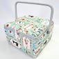Madarkkal díszített szögletes varródoboz, belső, kivehető műanyag tálcával Kézimunka-kellékek, például fonalak, tűk és egyéb eszközök tárolására szolgál.