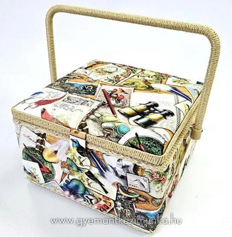 Madarakkal díszített szögletes varródoboz, belső, kivehető műanyag tálcával